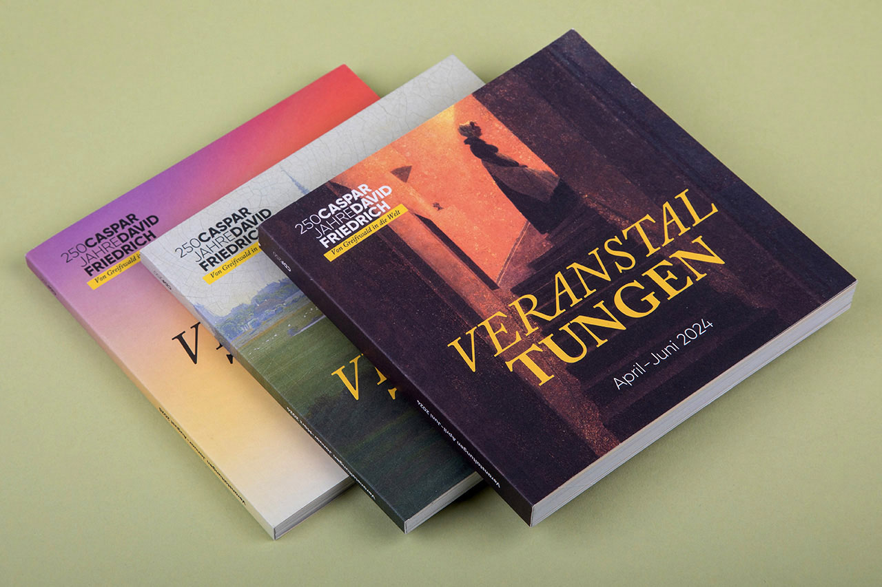 Wir freuen uns, unsere neuesten Druckprojekte für die Universitäts- und Hansestadt Greifswald vorzustellen: die Broschüre mit Klebebindung „Ohne Greifswald kein Caspar David Friedrich“ sowie verschiedene Programmhefte zum Jubiläumsjahr. Diese hochwertigen Drucksachen unterstreichen die enge Verbindung zwischen dem berühmten Maler der Romantik, Caspar David Friedrich und seiner Heimatstadt.
